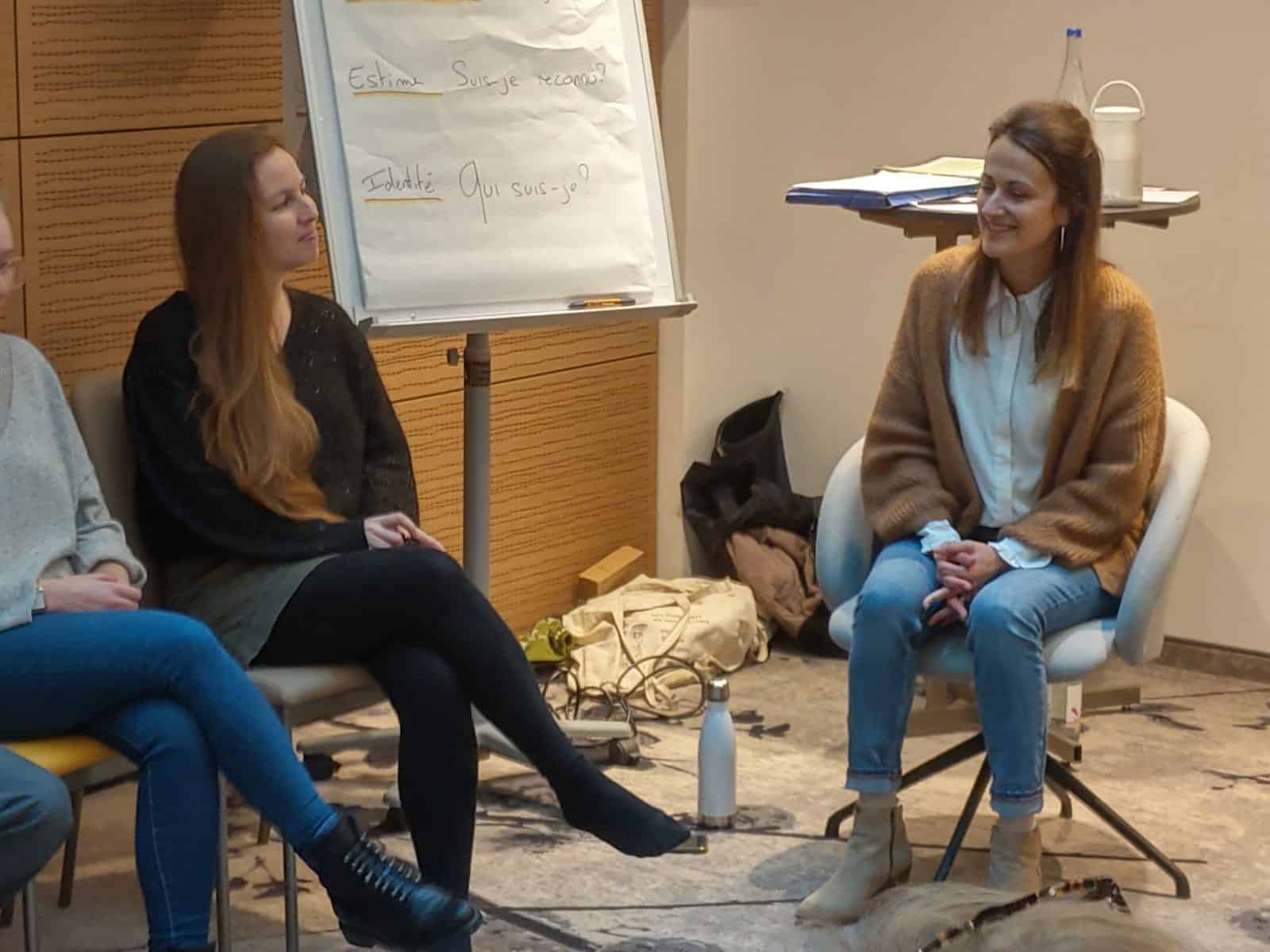 Les effets de la première journée de formation étaient inattendus, j’étais un peu perdue. Et la seconde journée, je l’étais encore plus: tourbillon d’émotions. J’ai été bousculée. Mais grâce au groupe et surtout à l’accompagnement de Maïté, les questions ont trouvées réponses. Les points sombres se sont éclaircis et chaque pièce du puzzle s’est logiquement imbriquée avec sa voisine.